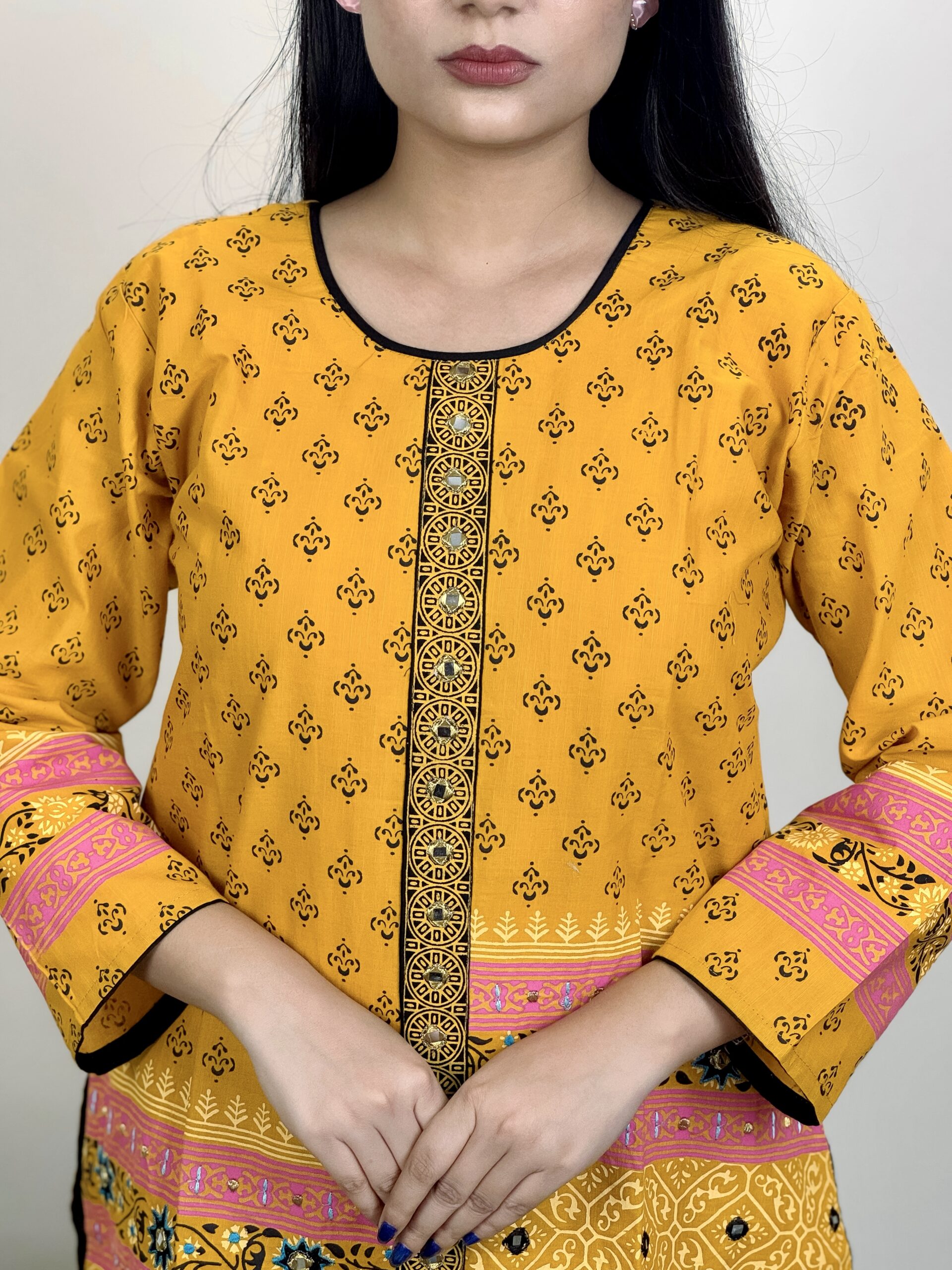 Be the first to review “Premium Cotton Salwar Kameez (Mustard Yellow) – Hand Stitched (Copy)”