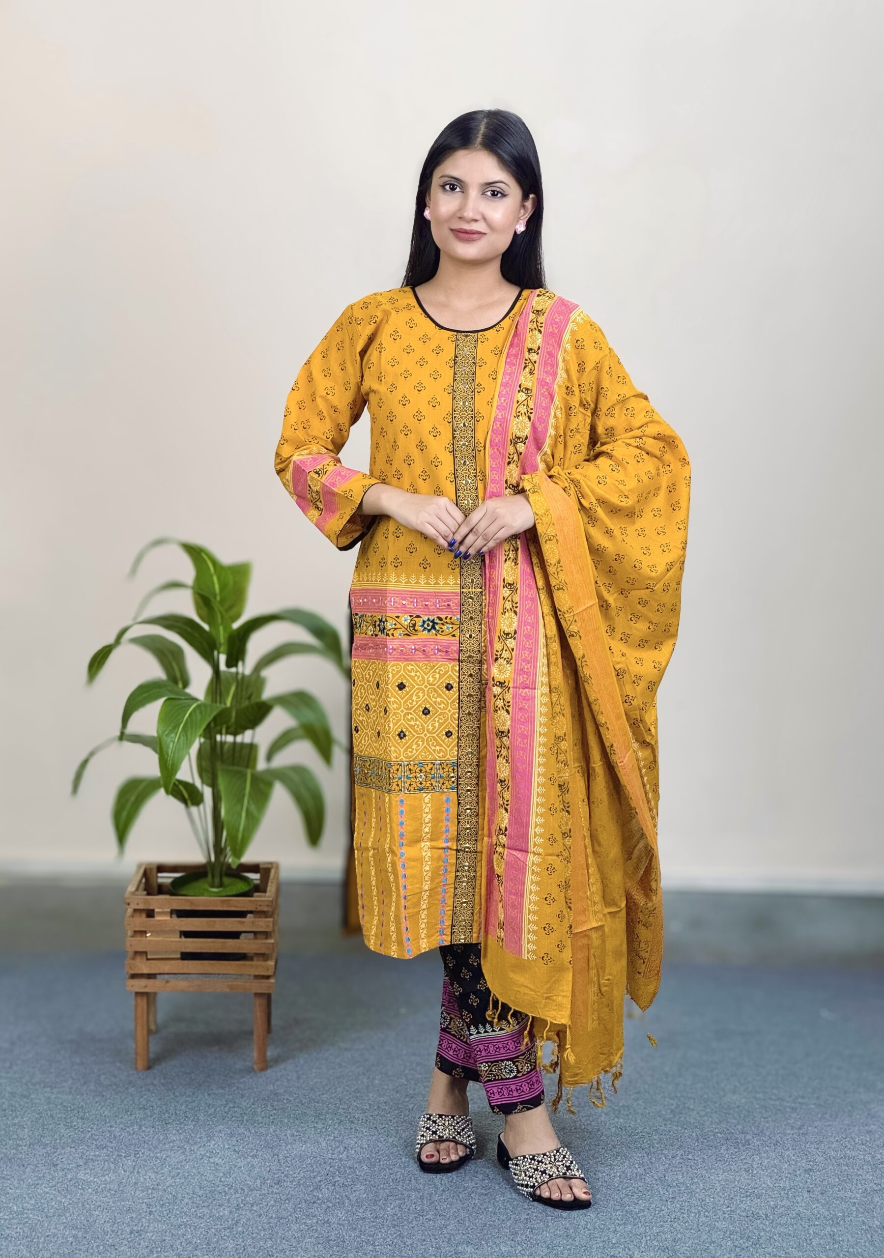 Premium Cotton Salwar Kameez (Mustard Yellow) – Hand Stitched (Copy)
